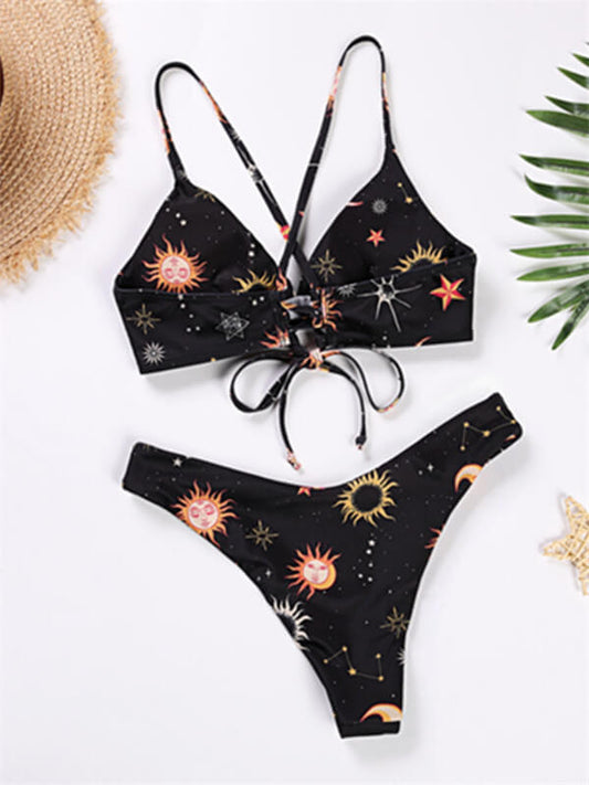 Black Floral Spaghetti Strap Bikini